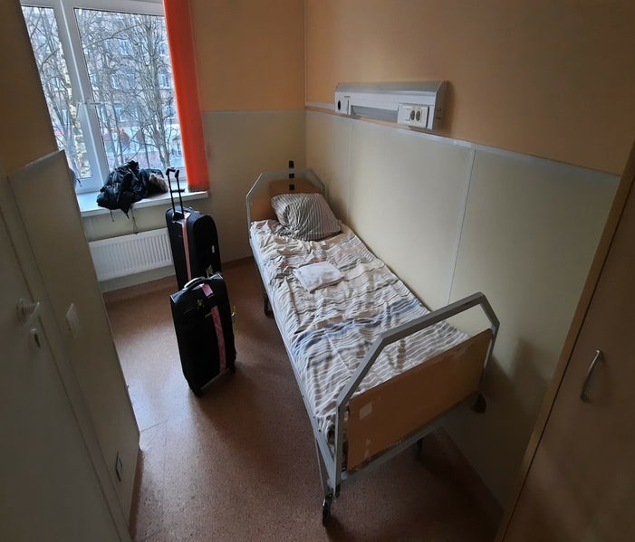 Kamertje, quarantaine kamer, covid kamer noem ik het.. Klein, maar alles wat je nodig hebt. Een bed, een tafel en stoel en een badkamer. Terwijl ik dit schrijf wordt er ontbijt onder m'n neus geschoven "goodmorning, breakfast.." dat is het enige Engels wat ingestudeerd is denk. Ik zei "thank you" kreeg het Russische "tak".. terug De kamer hier is heel rumoerig, het lijkt wel of ze een race spelletje doen met de karren, stalen karren met vierkante wielen. Gisteren een berichtje gestuurd naar een mede HSCT strijder die al boven is en boven is beter.. Zegt ze..