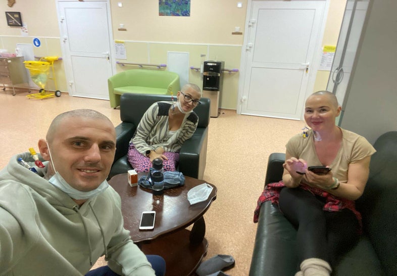 Het is zo fijn om dit samen te doen.. Some come new, some are in isolation, some almost go home.. But constantly people around, fighting this same monster. Its good to fight together. We are not alone!! - Links naar rechts Galina, Sofía, Radu, Beathe en ik.