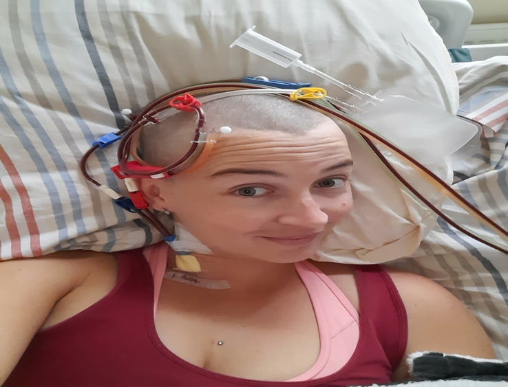 Neck katheter is er uit, de volgende infusen (ja ja, zo snel kom ik er niet van af...) zullen via m'n arm komen. Her en der nog wat plakzooi in m'n nek maar dat boenen we er nog wel van af.. Ik heb me even lekker op gefrist, (nu het nog kan en mag) en een beetje de avond "afsluiten" met wat netflix.. Nou ja, 'afsluiten' gebeurt nooit zoals gedacht.. je slaapt bijna en dan komt ineens je laatste infuus. Moet je daar weer op wachten..anyway, in dat stadium ben ik nu..