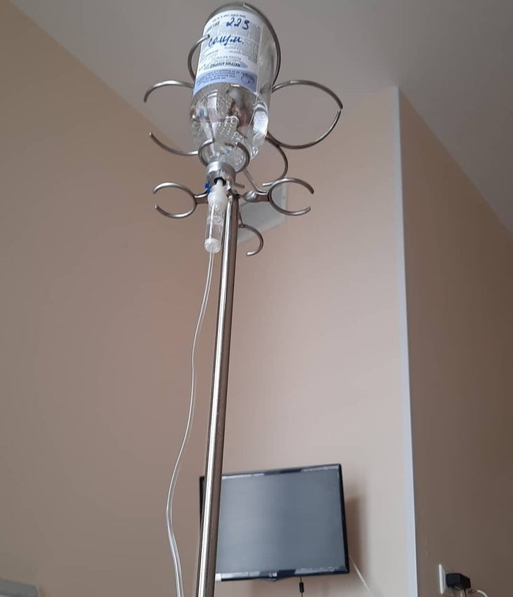 Toen kwam het laatste infuus en die liep zo langzaam door en kwam de lunch, dat stond daar maar en stond er maar.. Eindelijk kut infuus klaar kon ik lekker eten.. Viel totaal verkeer! Buik onrustig, rommelig en voor de zekerheid "spuugbak" mee op bed.. Zweten, ijlen, kwijlen, hummen en brommen..
